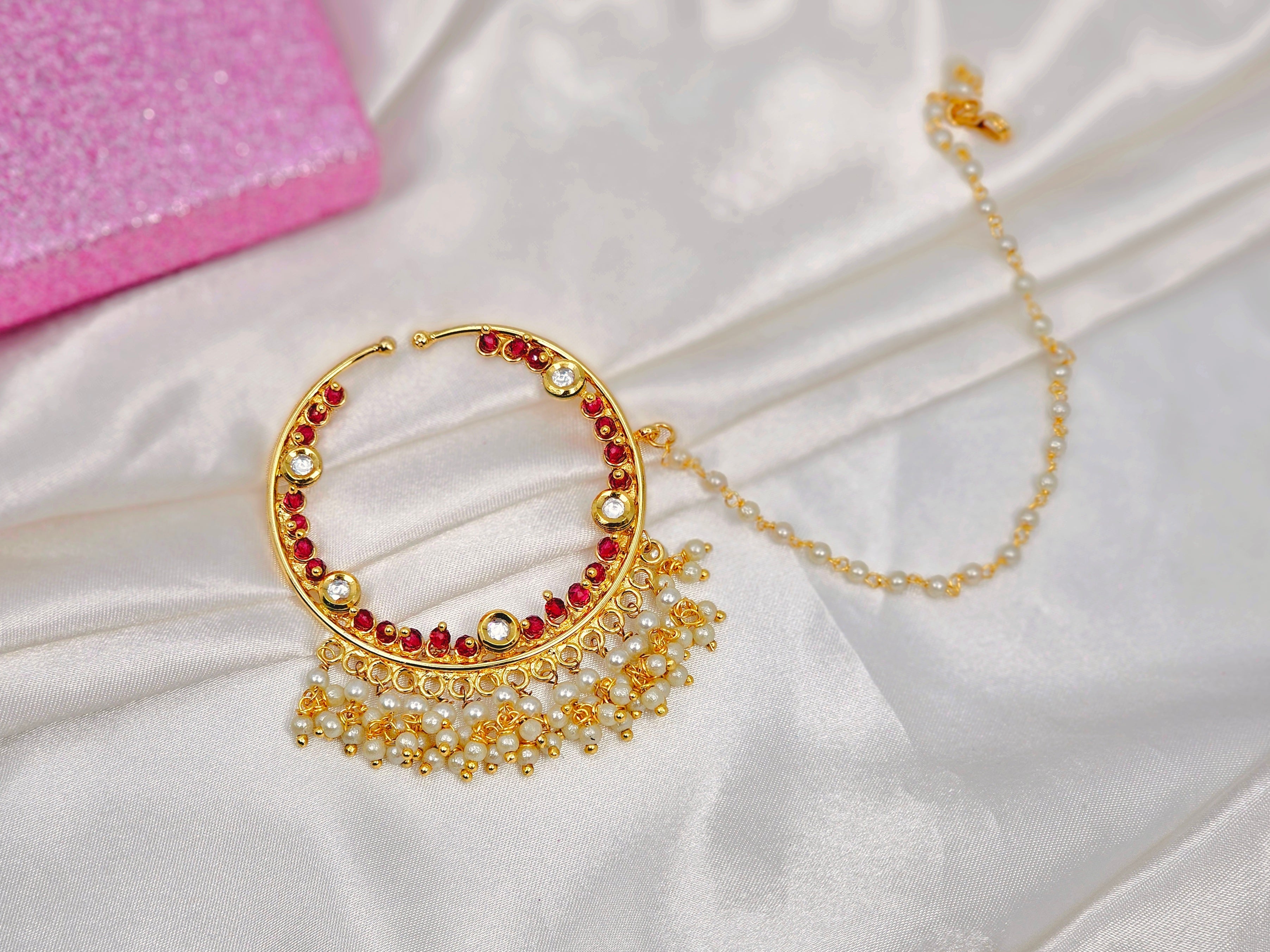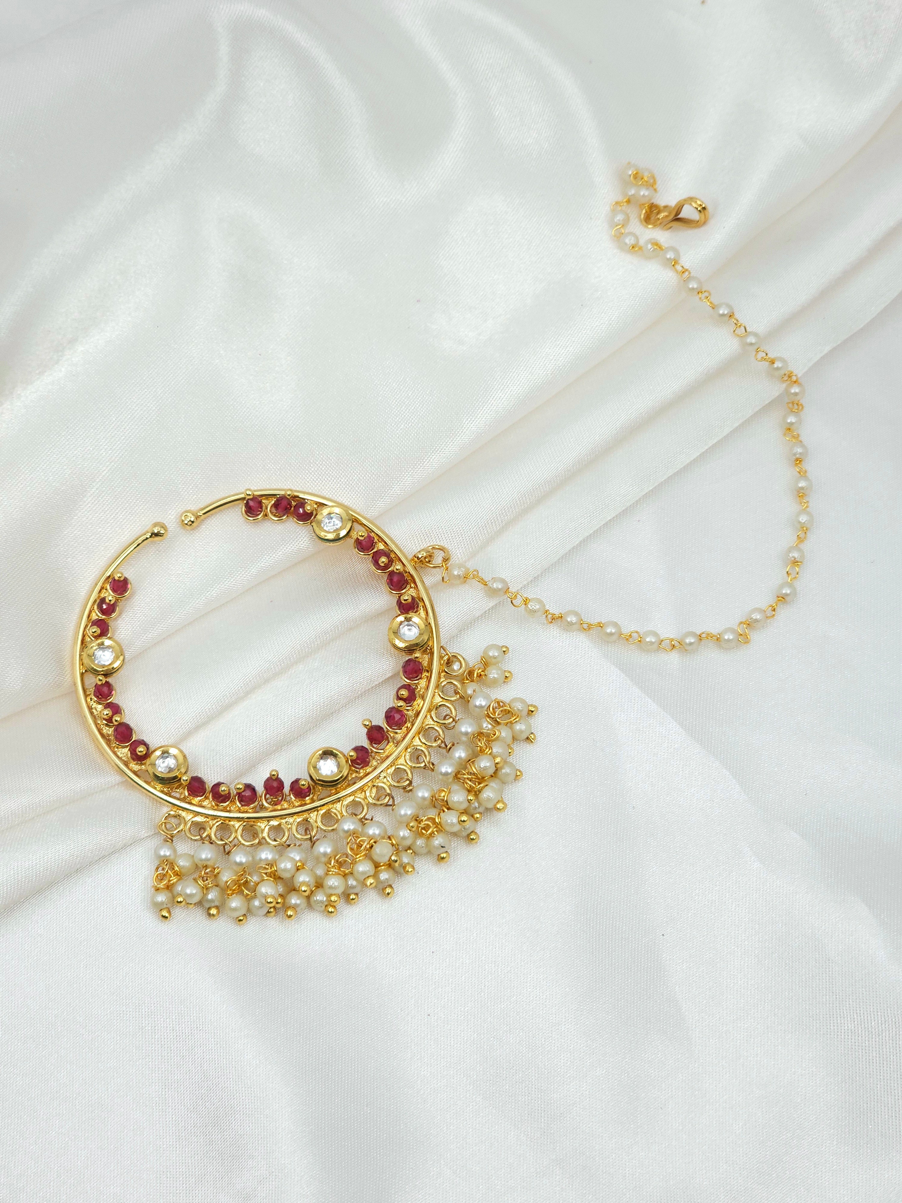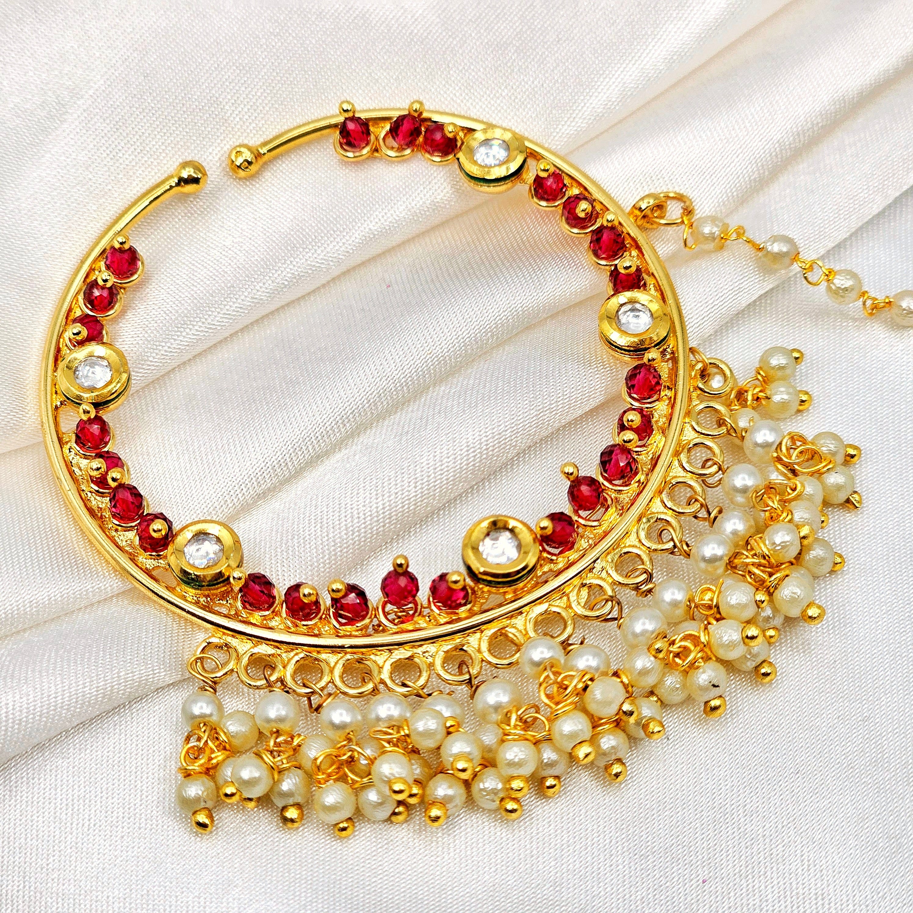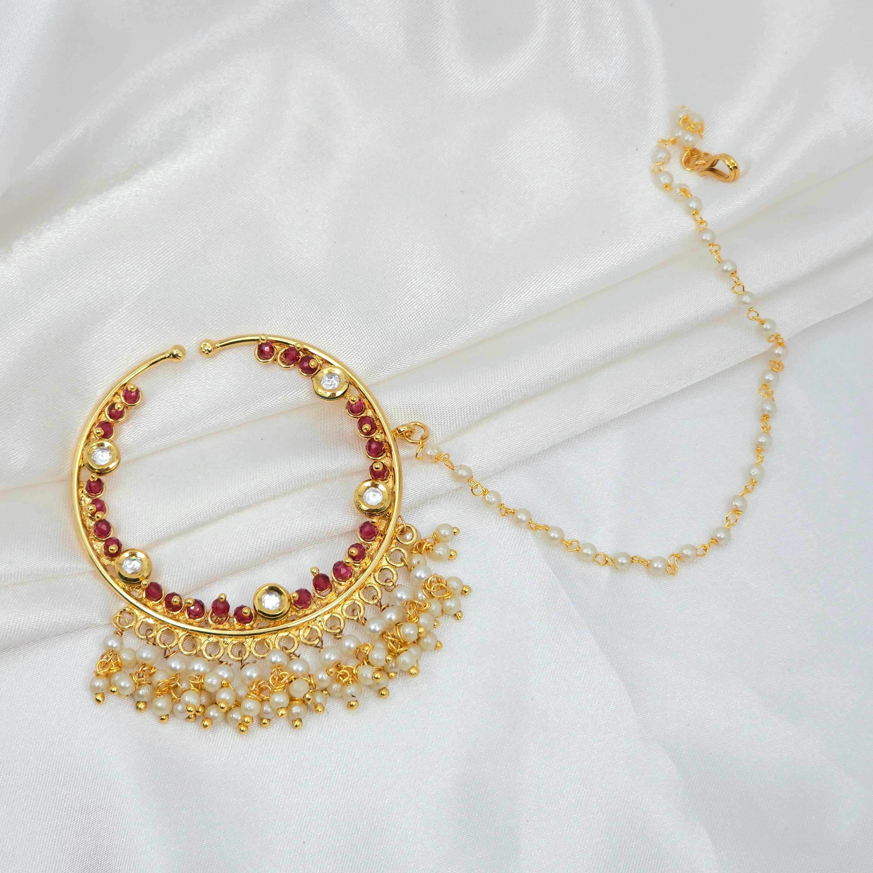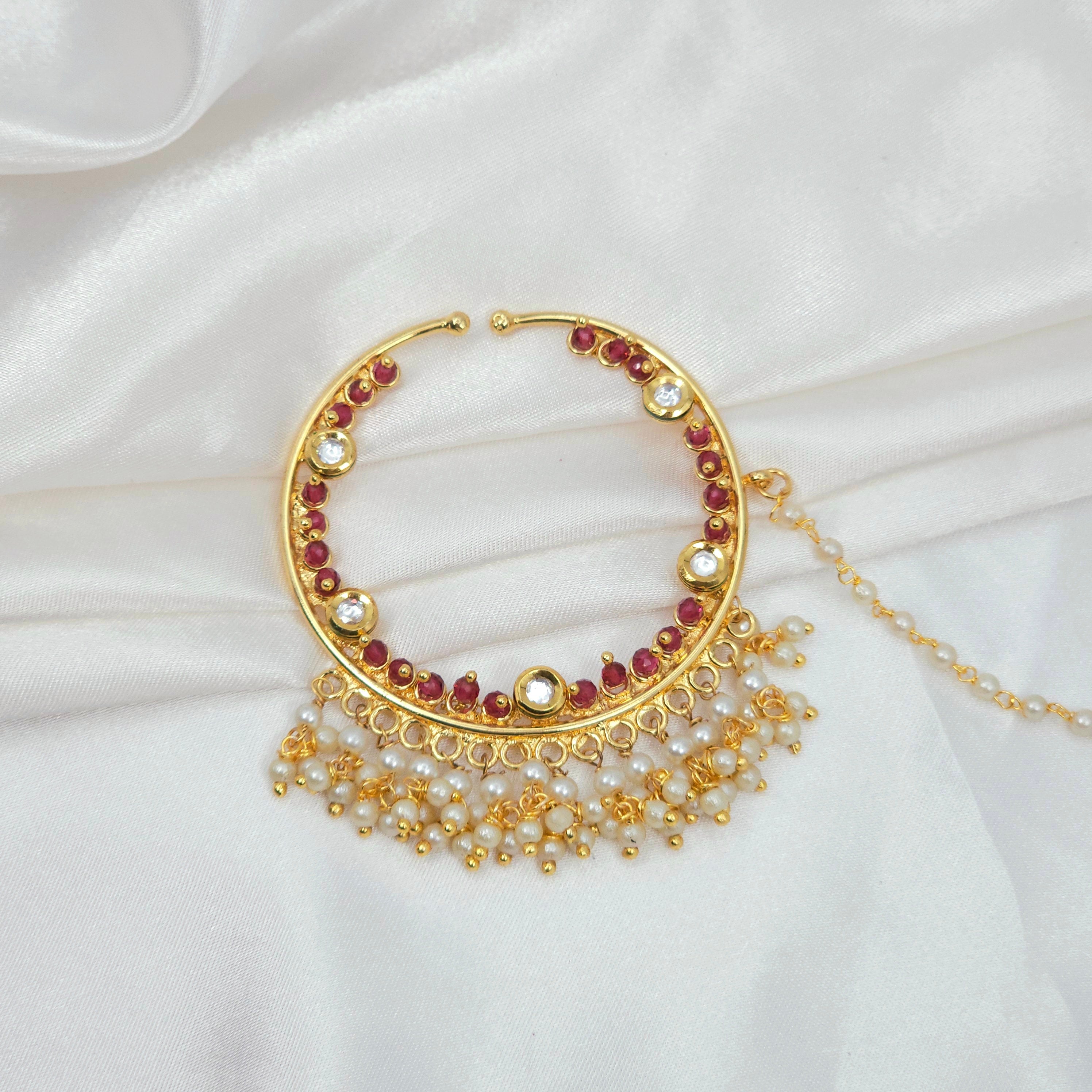 ✨ Elevate your ethnic look with our exquisite 5cm Kundan Bridal Nose Ring with chain – a handcrafted Indian Nose Ring designed for bridal wear, festive occasions, and traditional charm.