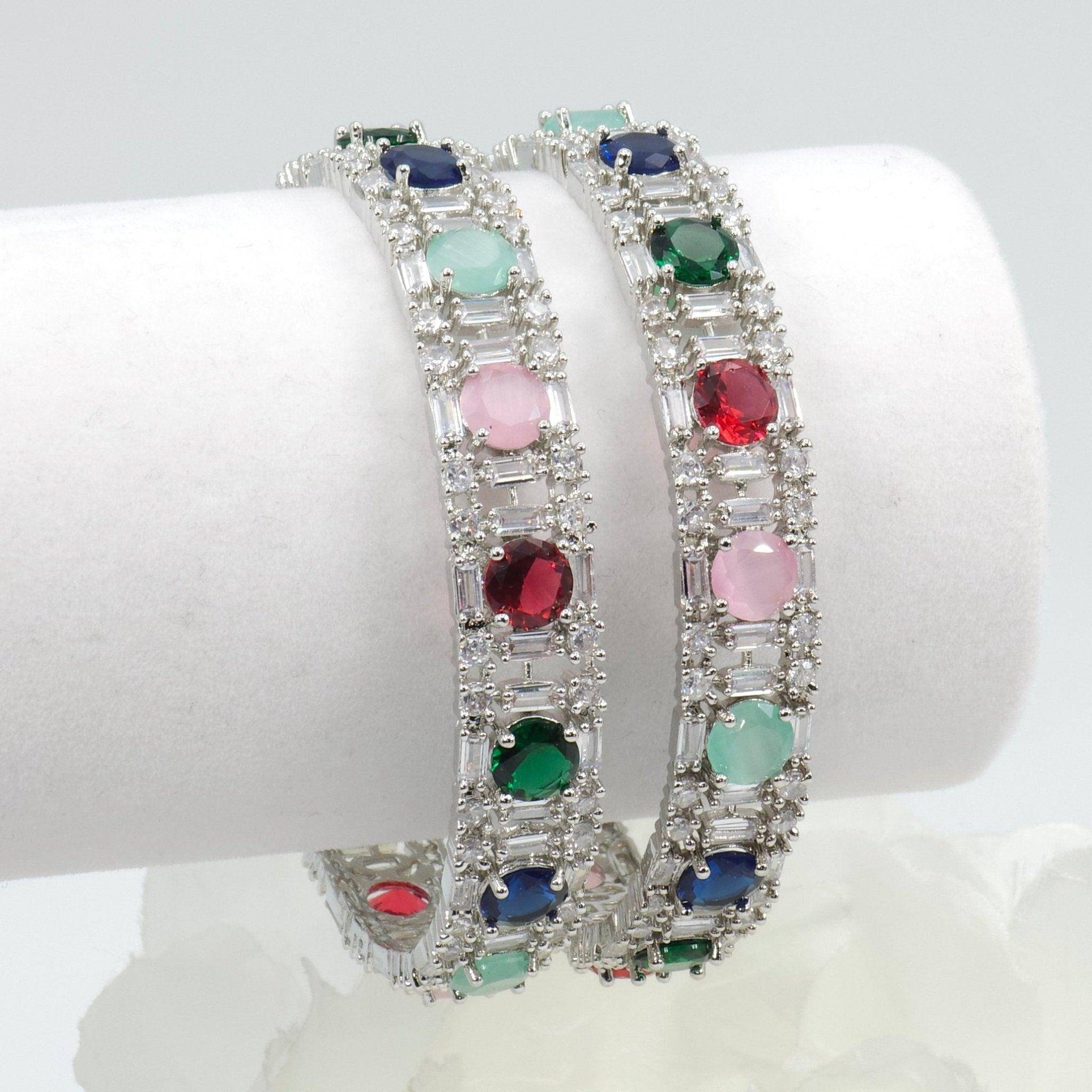 American Diamond Silver Multicolour Bangle Set