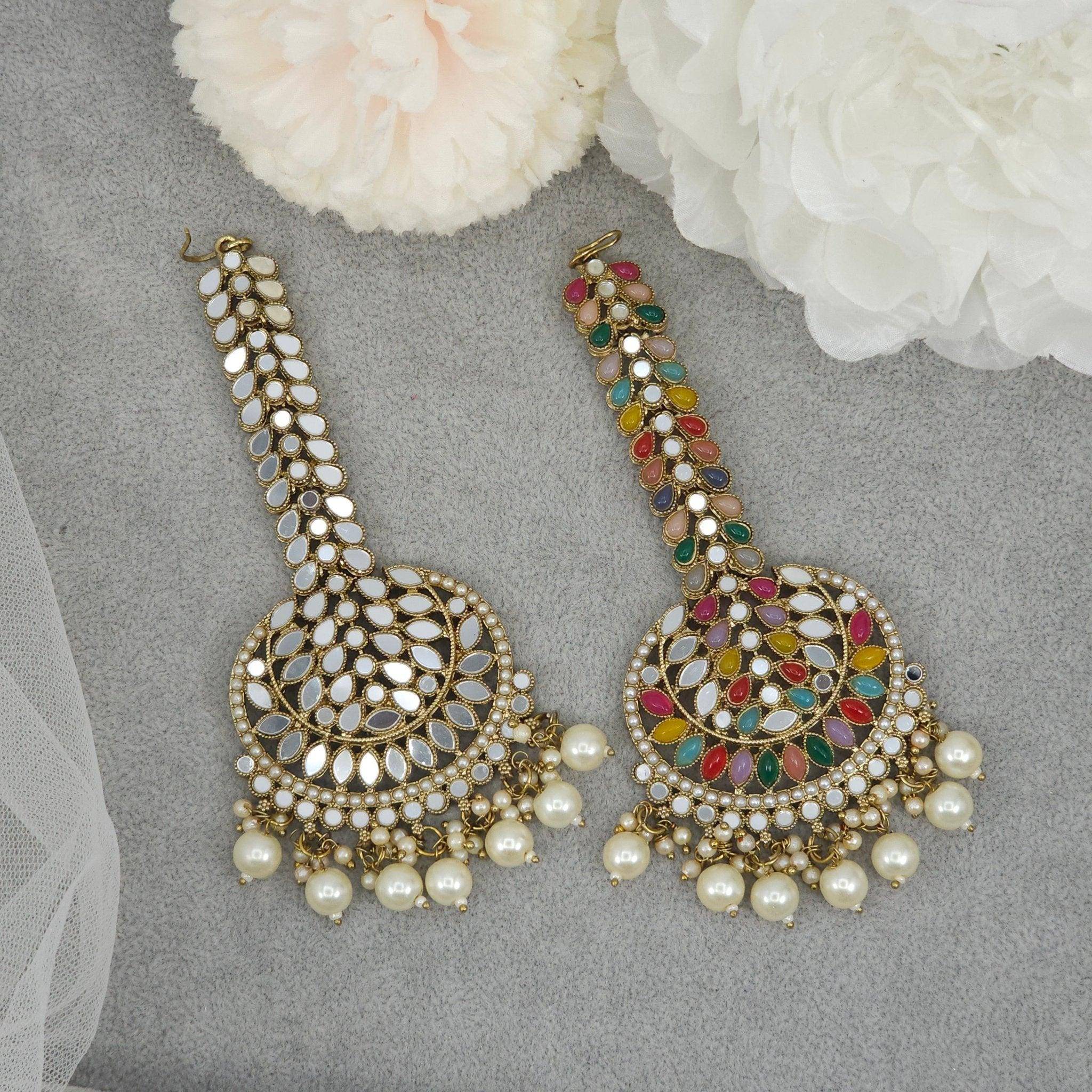 ✨ Elevate your ethnic look with our exquisite Antique Gold Mirror Mang Tikka – a handcrafted Indian Mangtikka designed for bridal wear, festive occasions, and traditional charm.