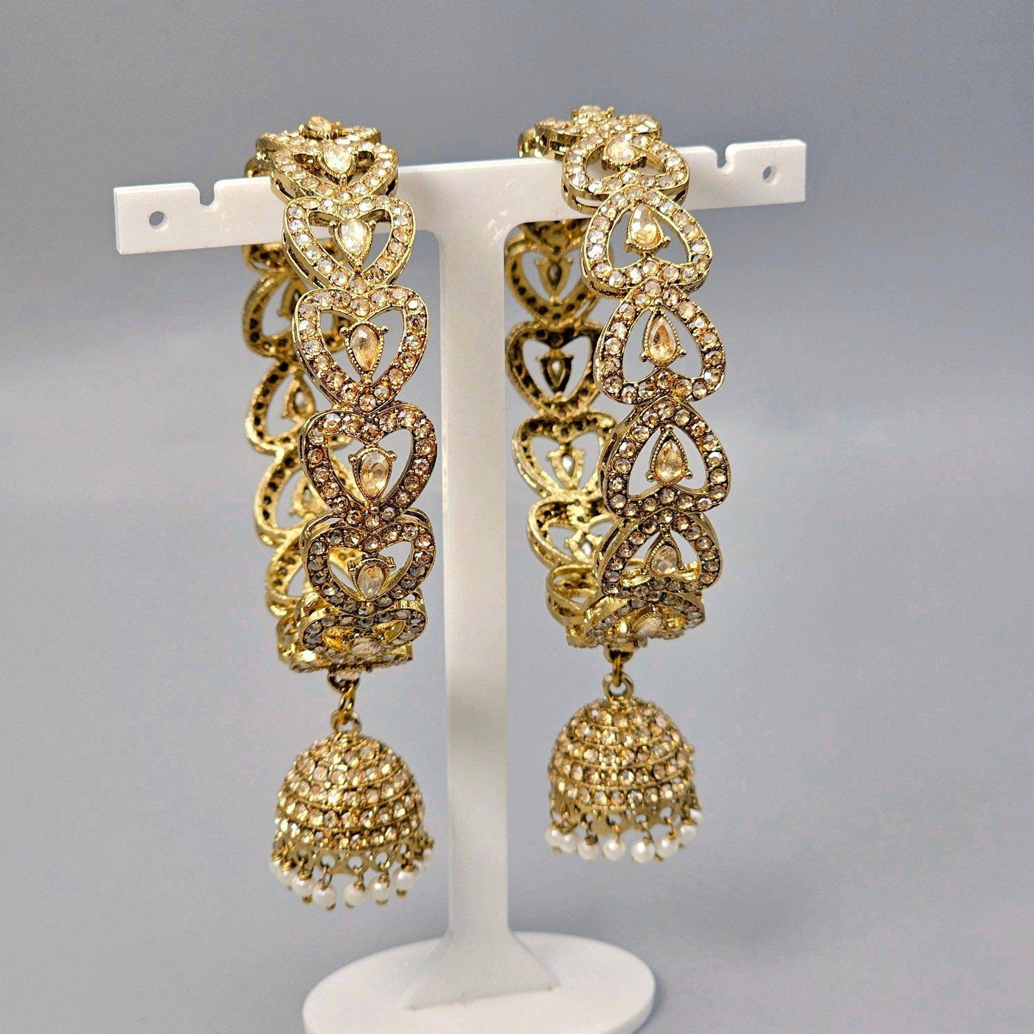 ✨ Elevate your ethnic look with our exquisite Gold Plated Polki Jhumka Bangles – a handcrafted Indian bangles designed for bridal wear, festive occasions, and traditional charm.