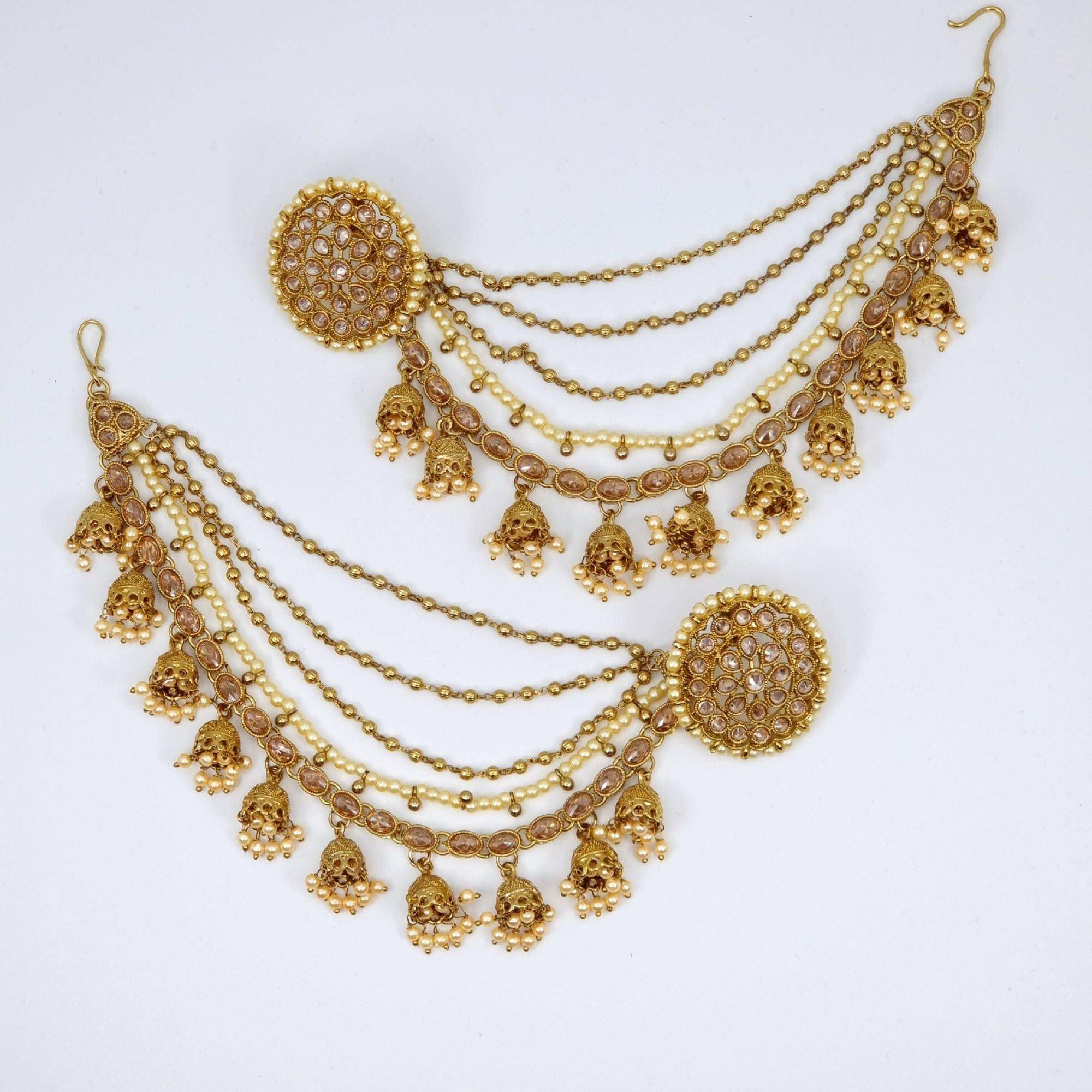 ✨ Elevate your ethnic look with our exquisite Kriti Earrings tops with Heavy earring Chains - Champagne – a handcrafted Indian Earrings designed for bridal wear, festive occasions, and traditional charm.