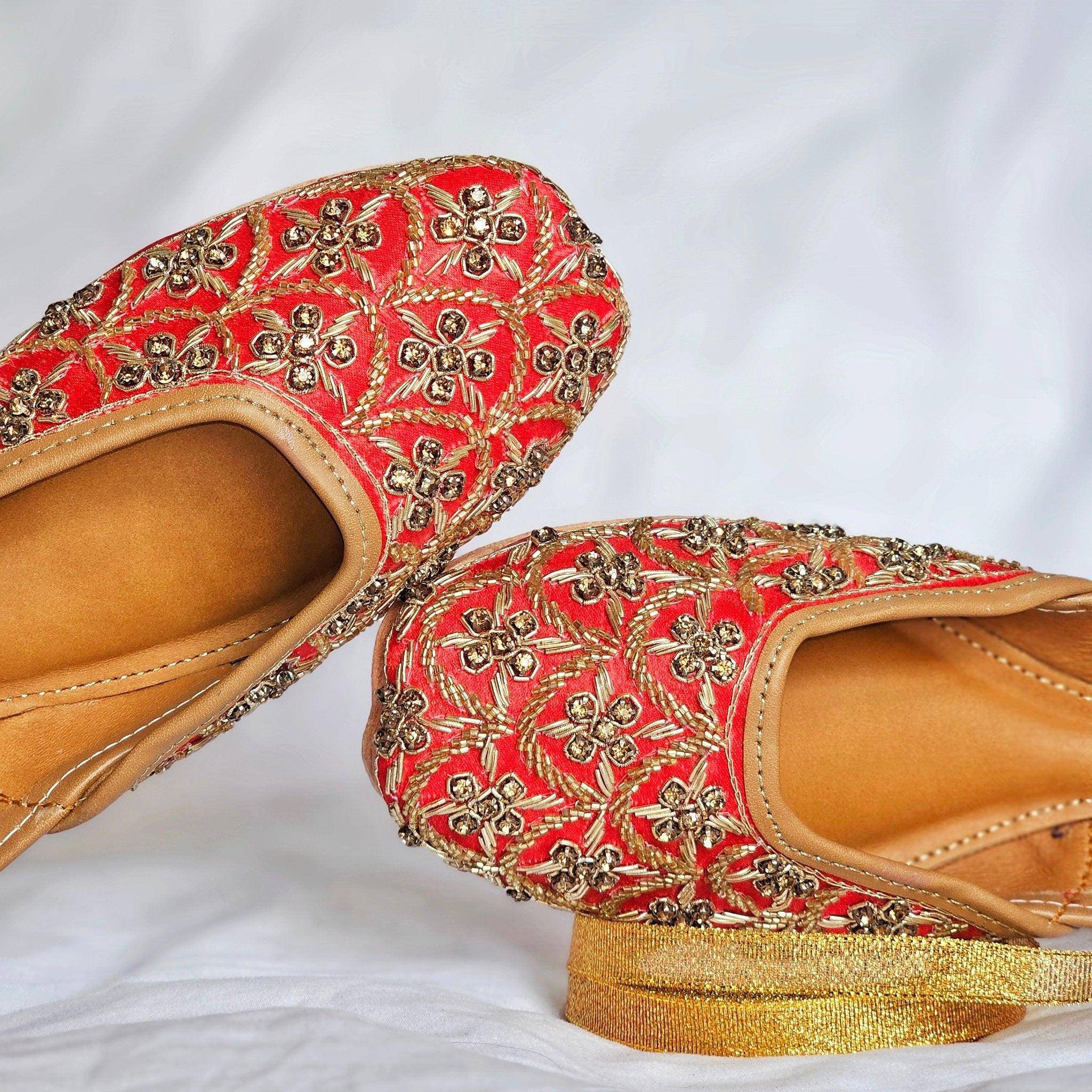 ✨ Elevate your ethnic look with our exquisite Nazar Red Embelised Bridal Juttis – a handcrafted Indian Jutti designed for bridal wear, festive occasions, and traditional charm.