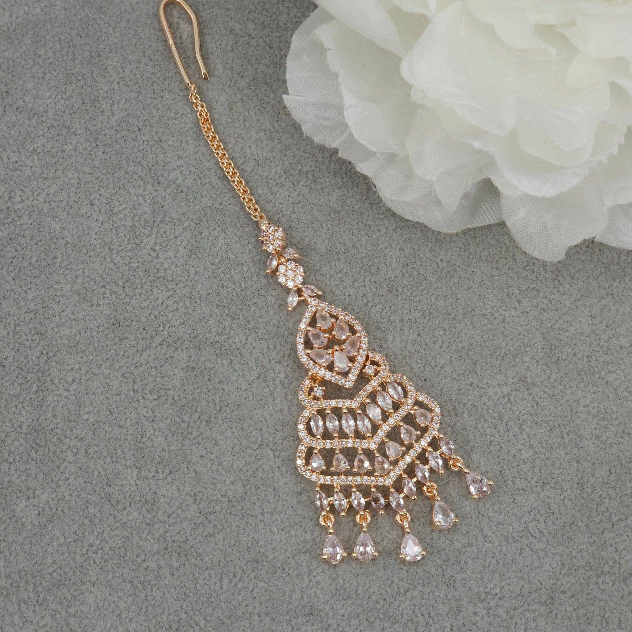 ✨ Elevate your ethnic look with our exquisite Roohi Rose Gold AD Mangtikka – a handcrafted Indian Mangtikka designed for bridal wear, festive occasions, and traditional charm.