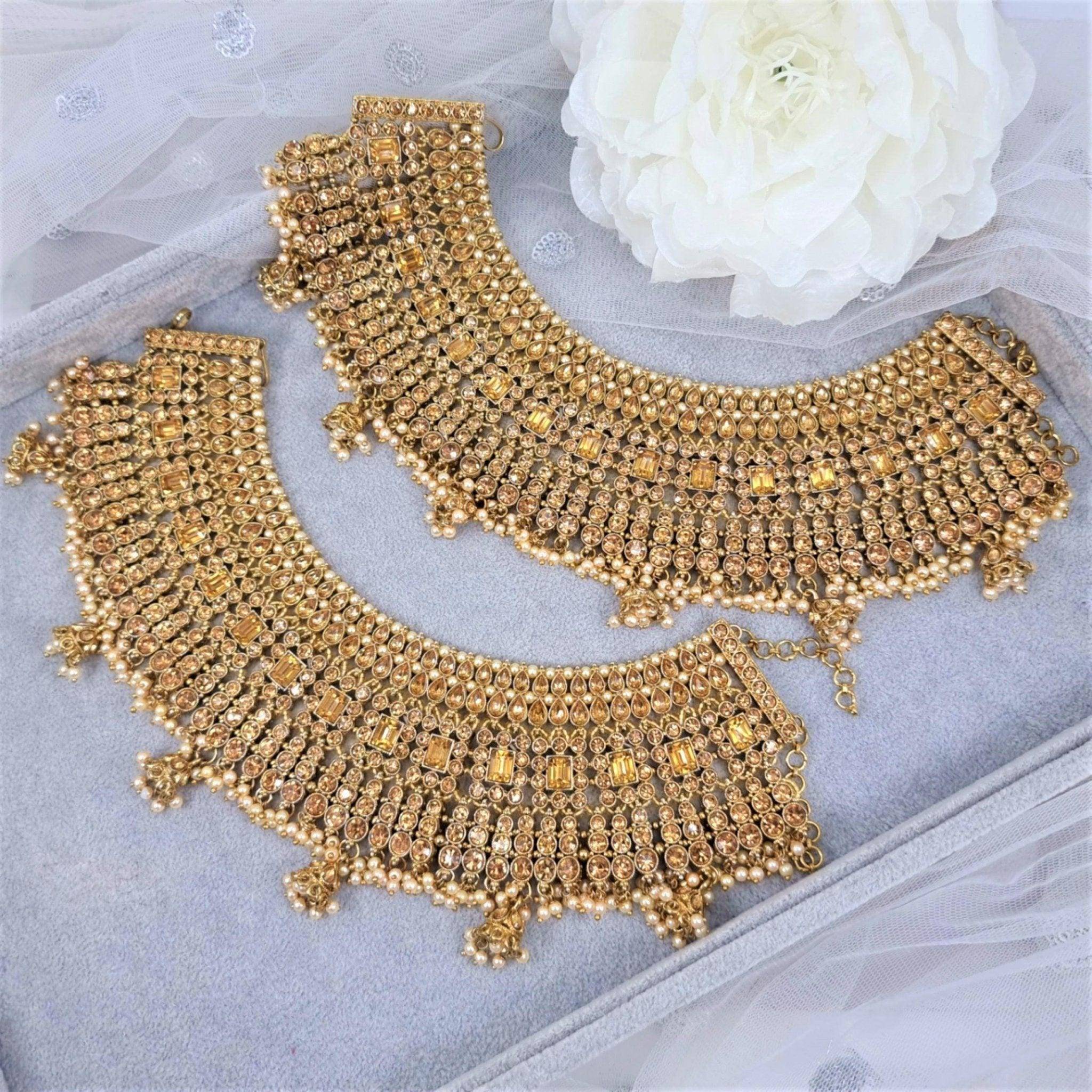 ✨ Elevate your ethnic look with our exquisite Sahiba Heavy Bridal Anklets – a handcrafted Indian Anklet designed for bridal wear, festive occasions, and traditional charm.