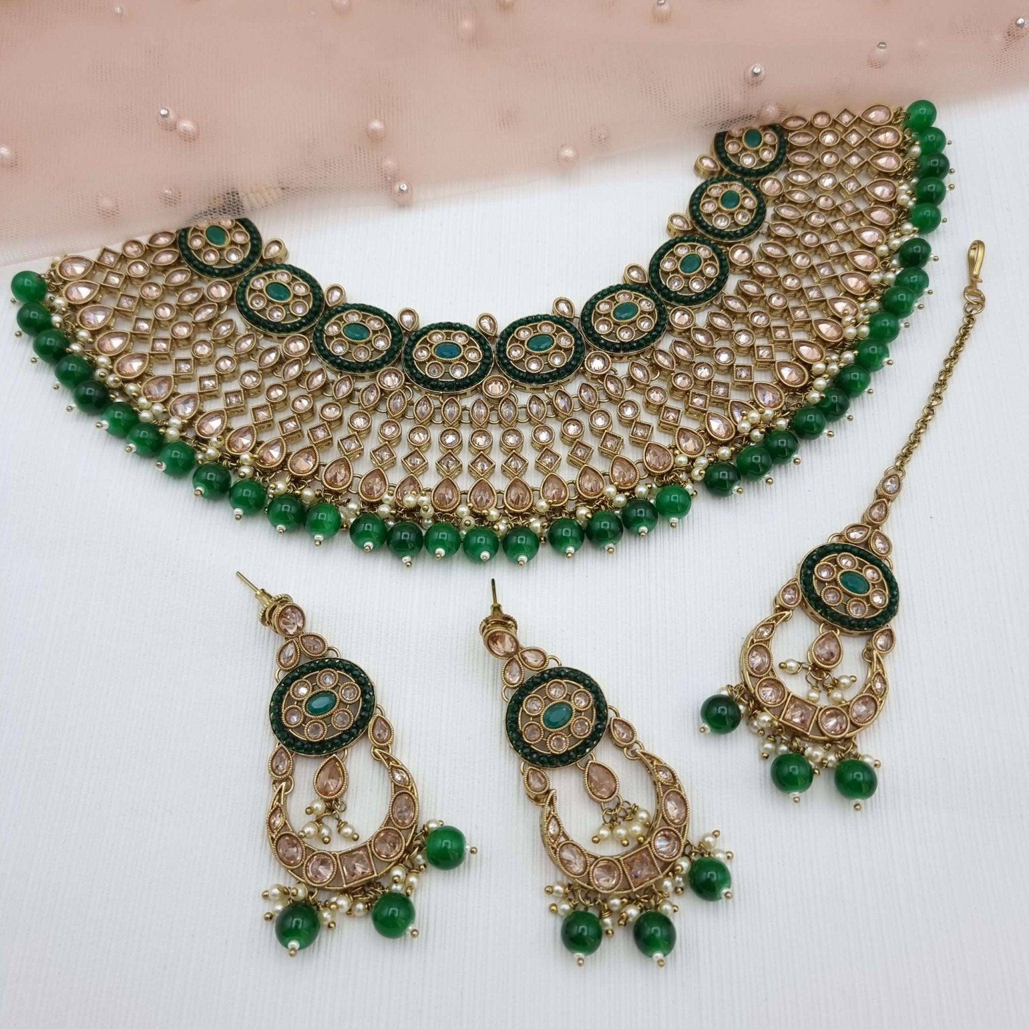 ✨ Elevate your ethnic look with our exquisite Sanam Necklace Set Green – a handcrafted Indian Nacklace designed for bridal wear, festive occasions, and traditional charm.