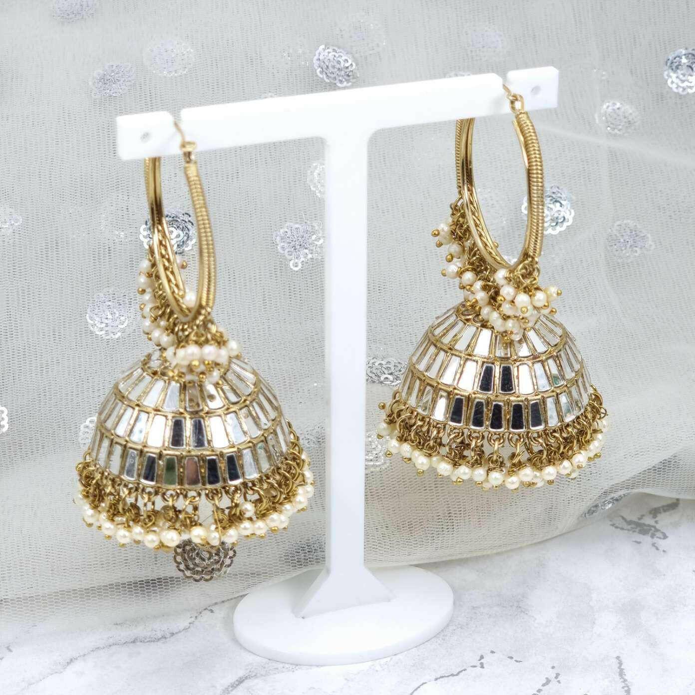 Sonam- Antique Gold Mirrored Statement Jhumki Bali